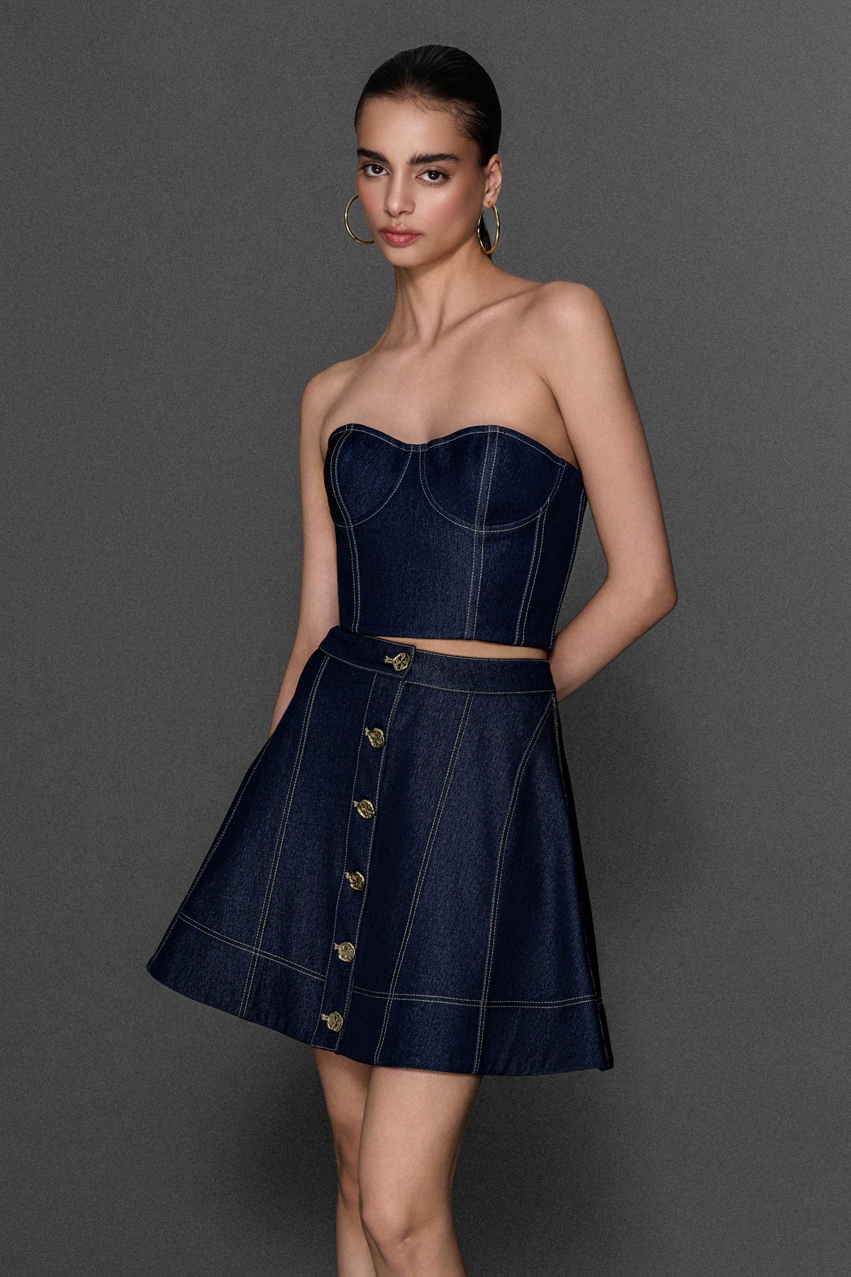 METAL DÜĞMELİ ÇAN FORMLU JEAN ETEK JEAN