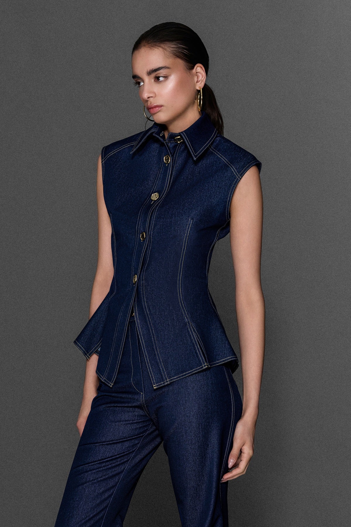VÜCUDA OTURAN KOLSUZ KOT YELEK JEAN
