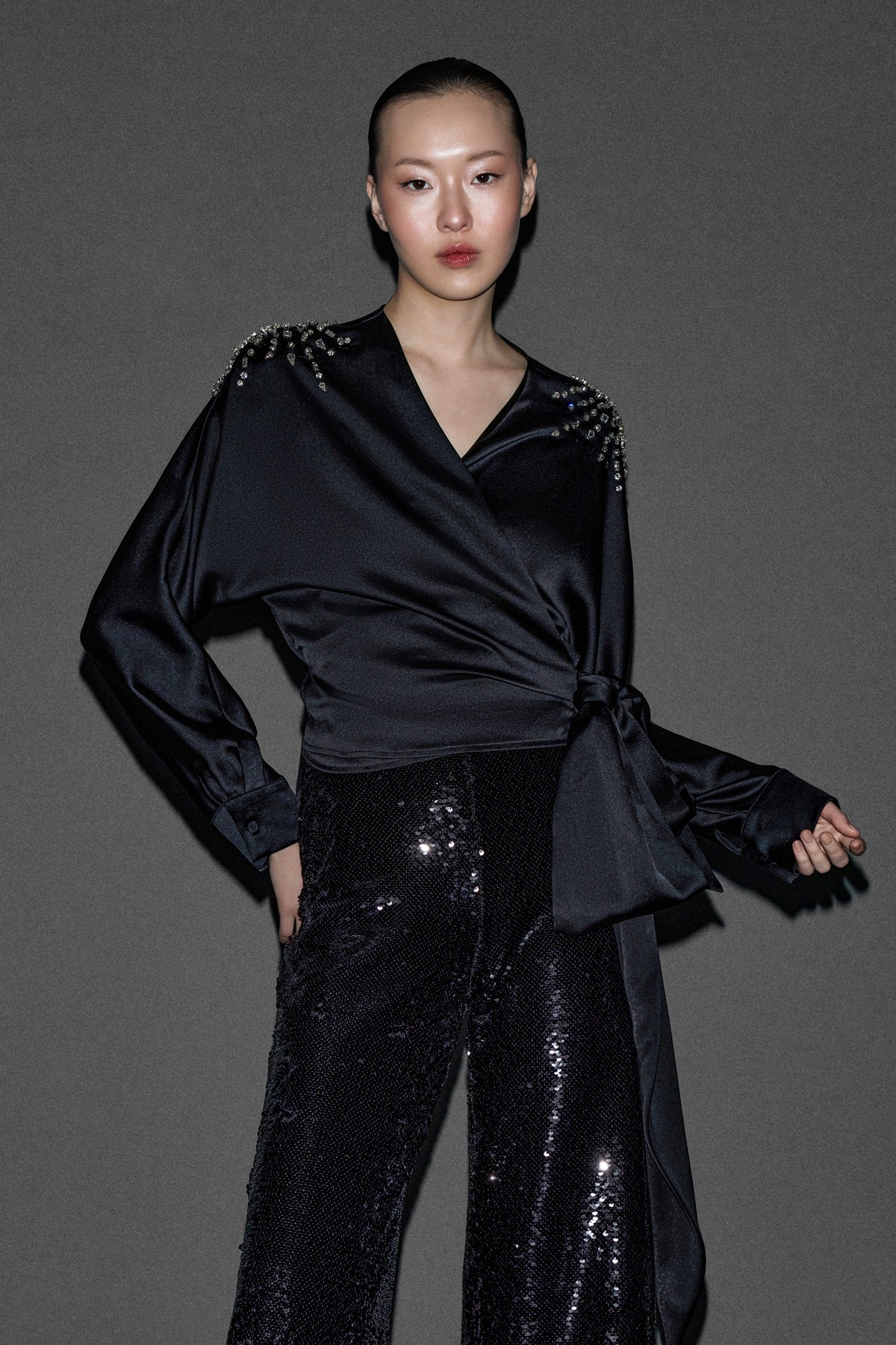 BAĞLAMA DETAYLI BLUZ SİYAH