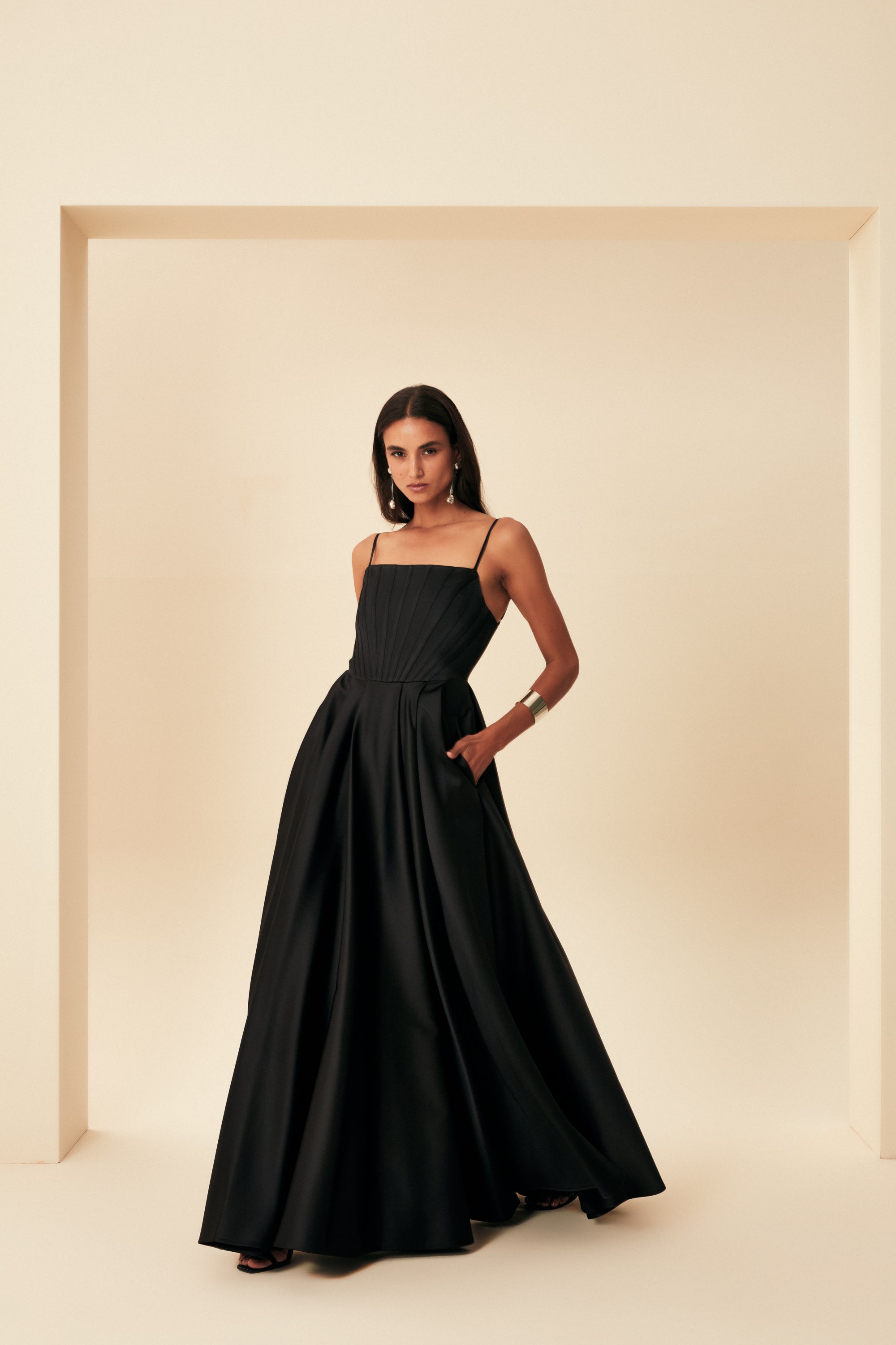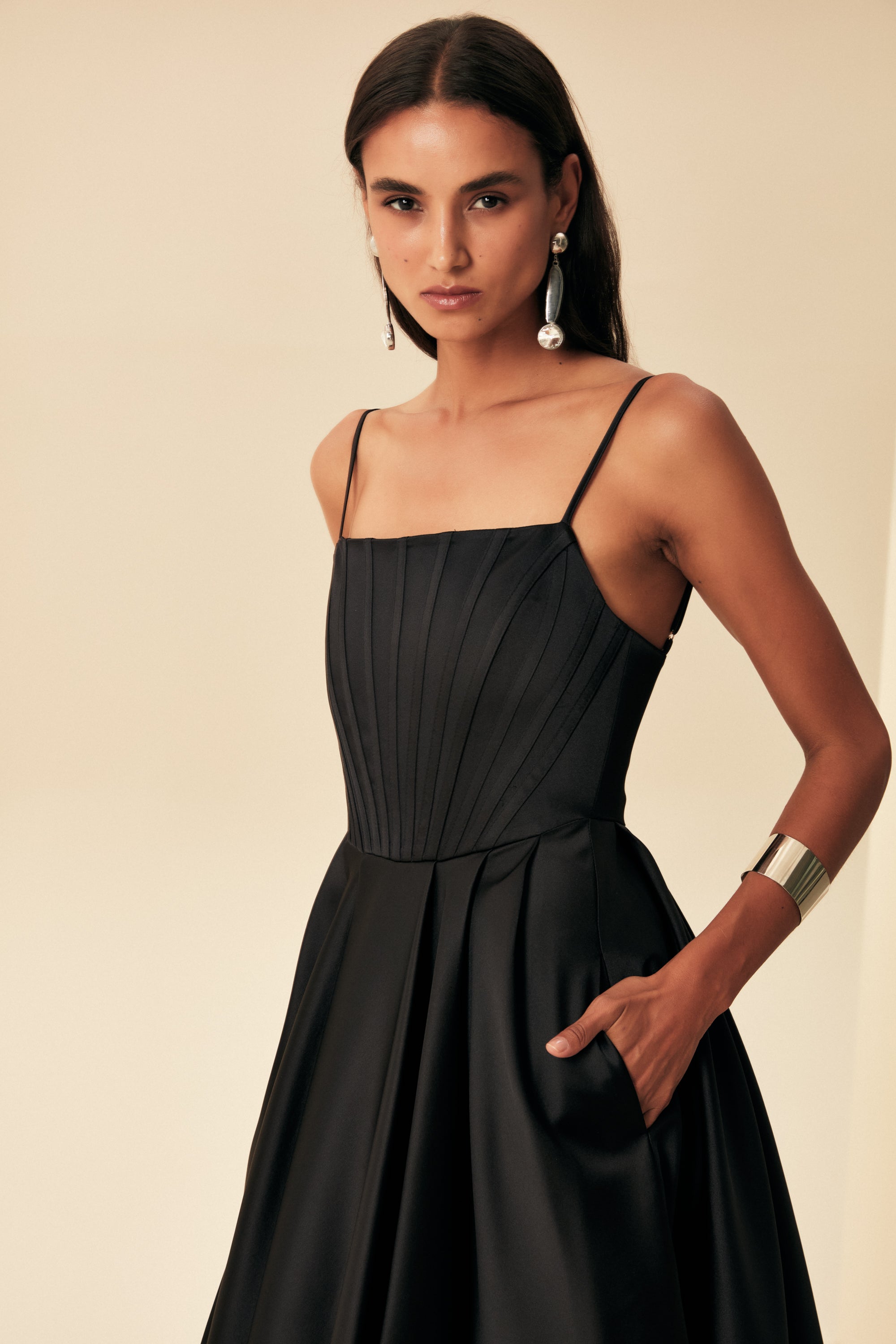 ÜST BEDENİ BALENLİ KORSE UZUN ASKILI ABİYE SİYAH