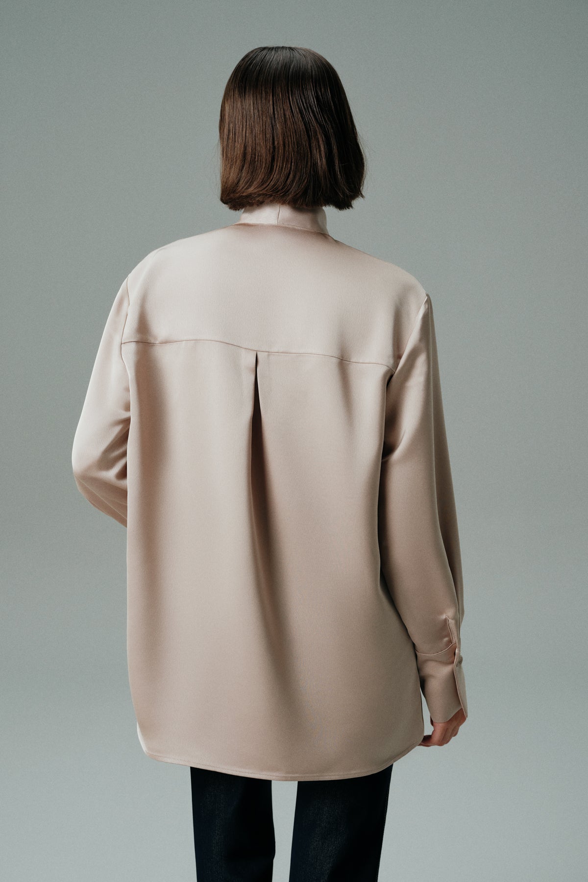 FULAR YAKA BAĞLAMALI UZUN KOLLU SATEN GÖMLEK BEJ