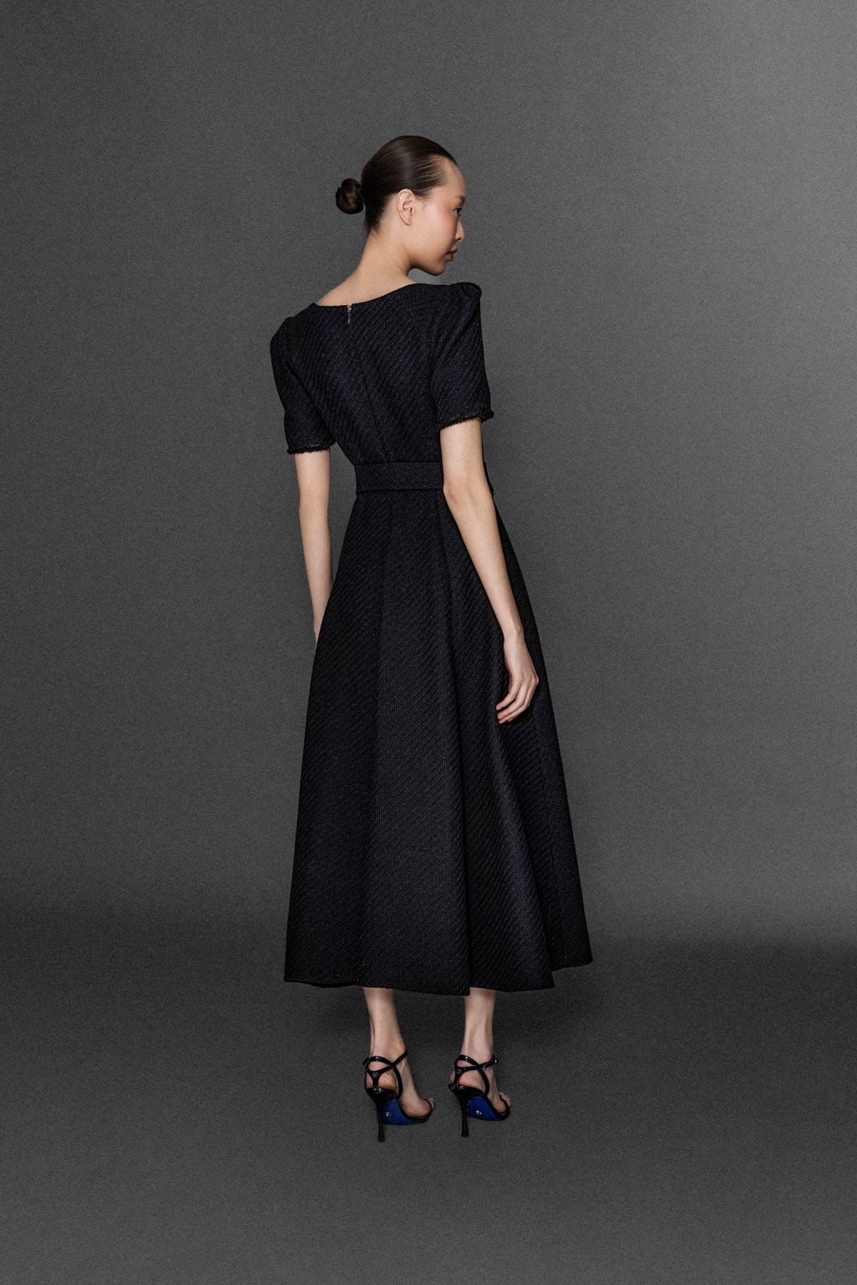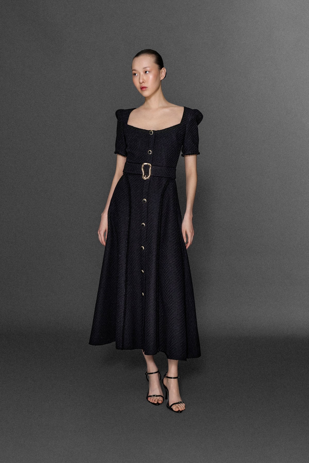 GOLD AKSESUAR DETAYLI MİDİ BOY TÜVİT ELBİSE SİYAH