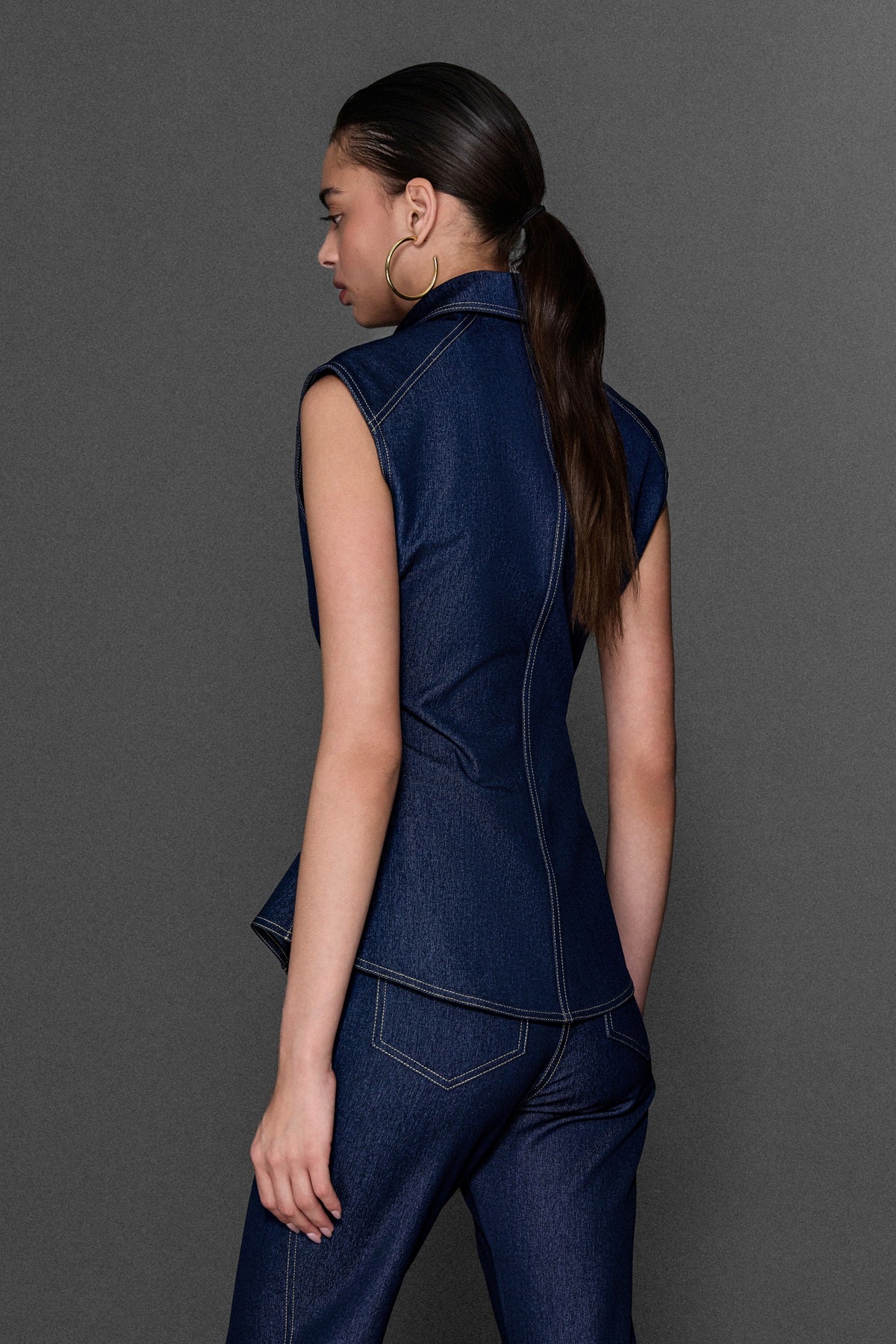 VÜCUDA OTURAN KOLSUZ KOT YELEK JEAN