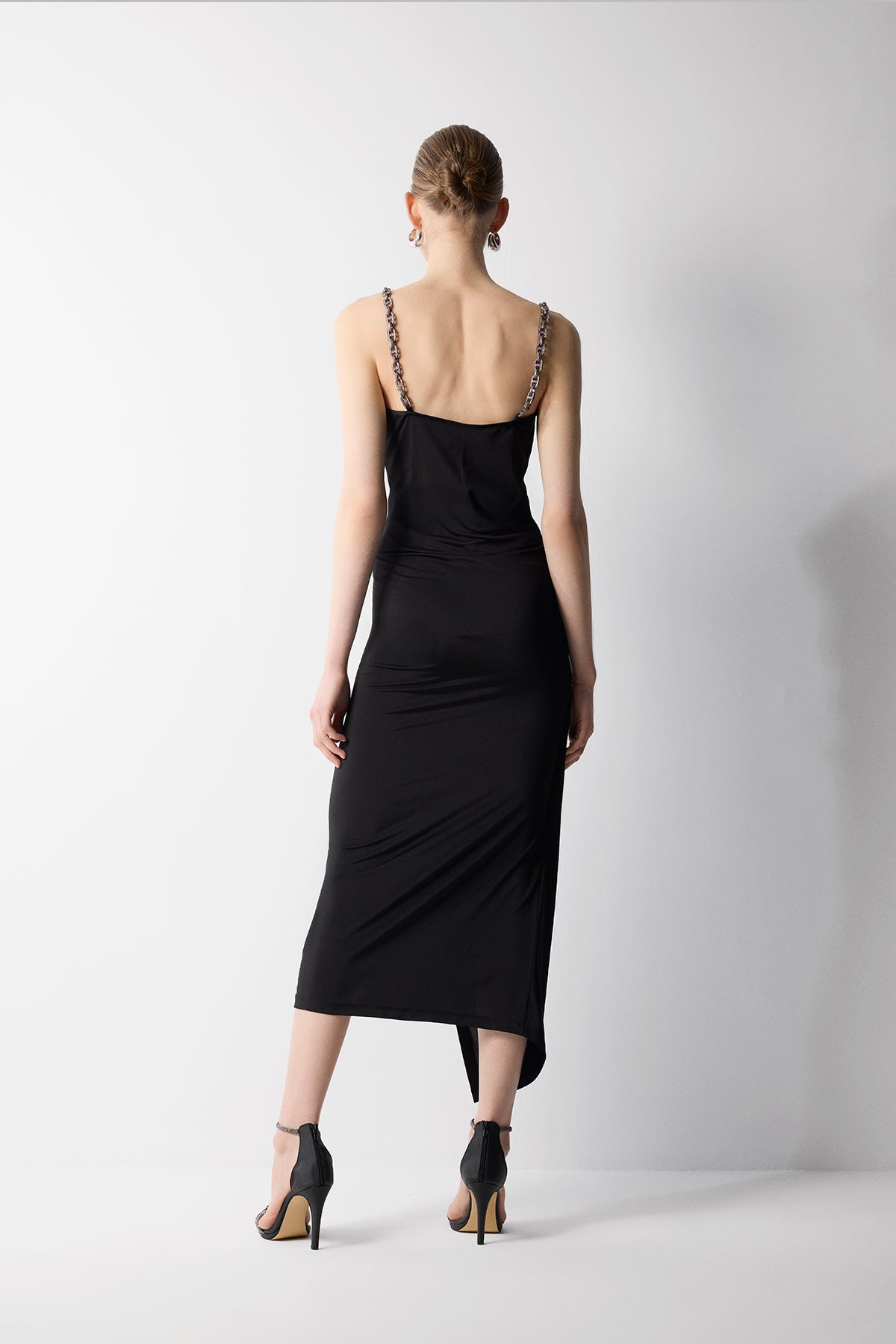 TOPLAMA VE ZİNCİR DETAYLI MİDİ BOY JARSE ETEK SİYAH
