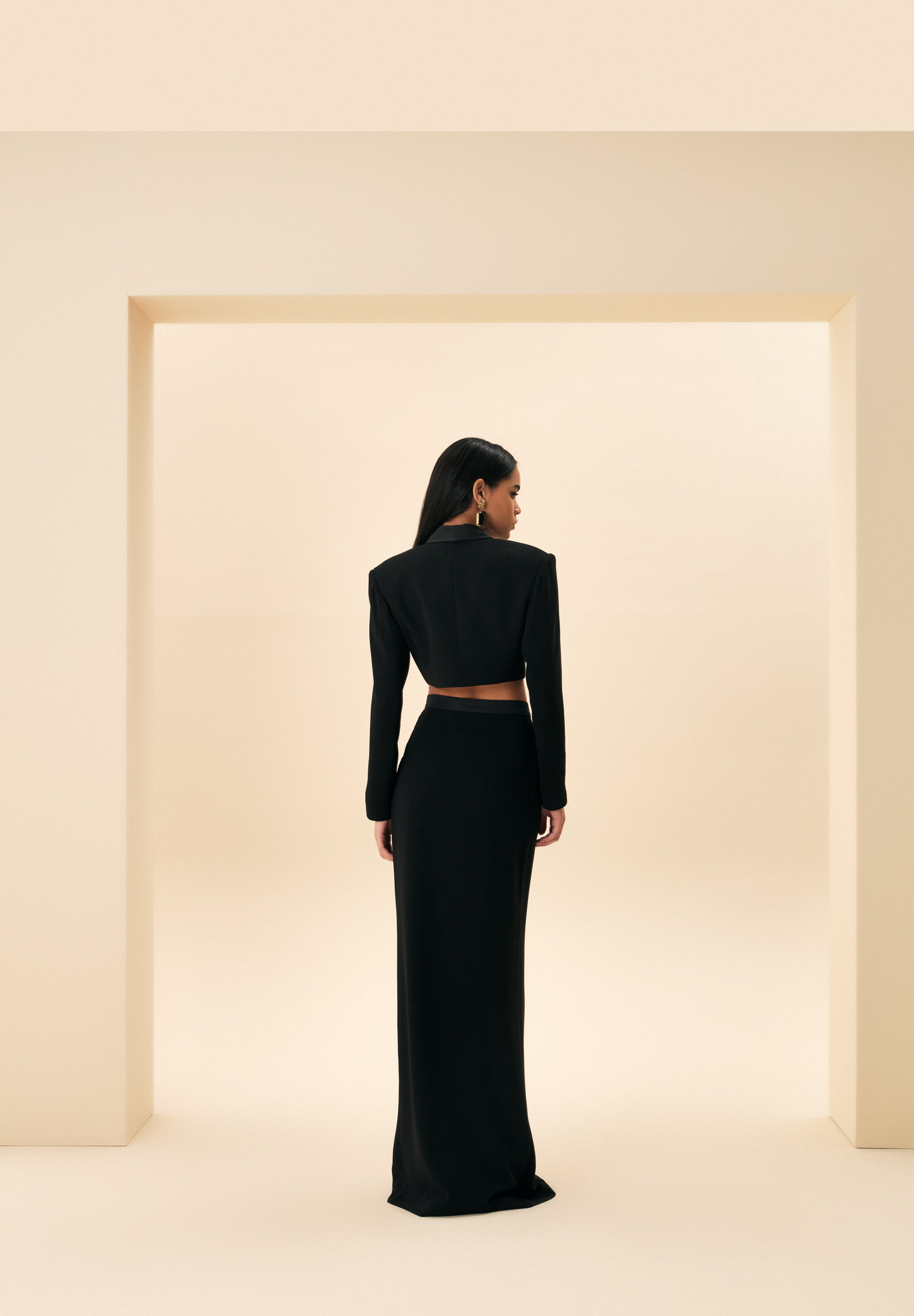 YIRTMAÇ DETAYLI KRUVAZE ETEK SİYAH
