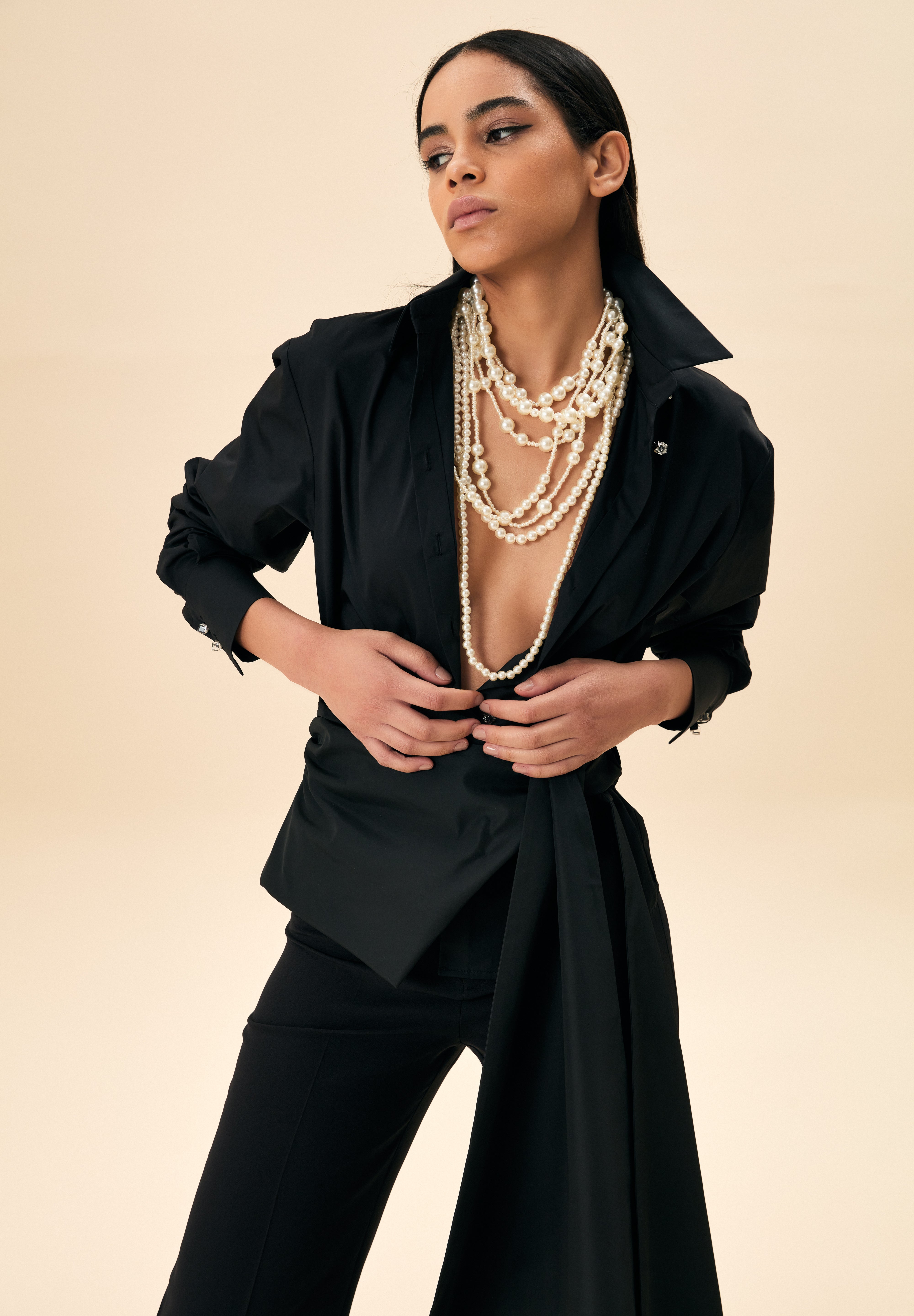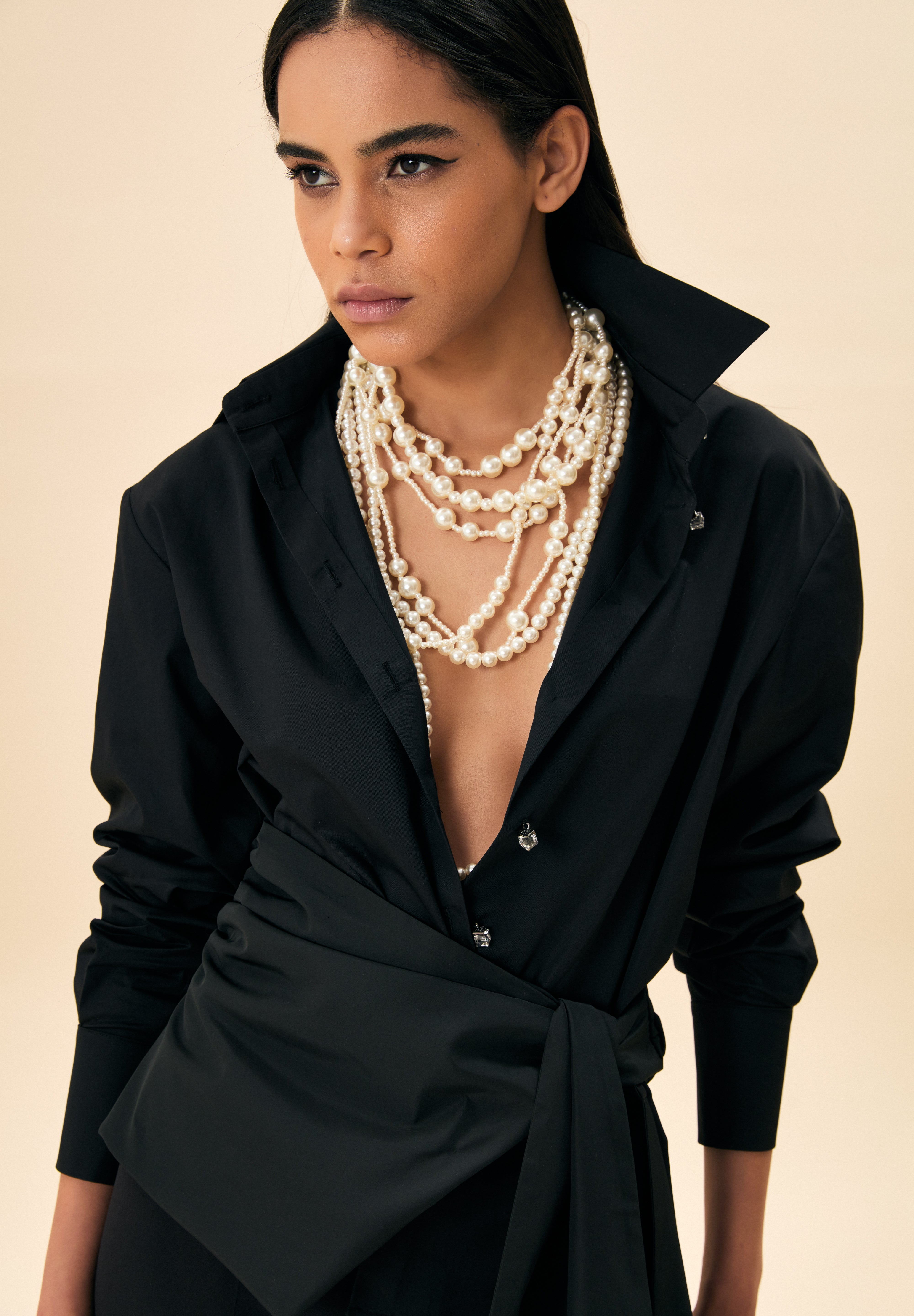 BELDEN KUŞAK BAĞLAMALI GÖMLEK BLUZ SİYAH