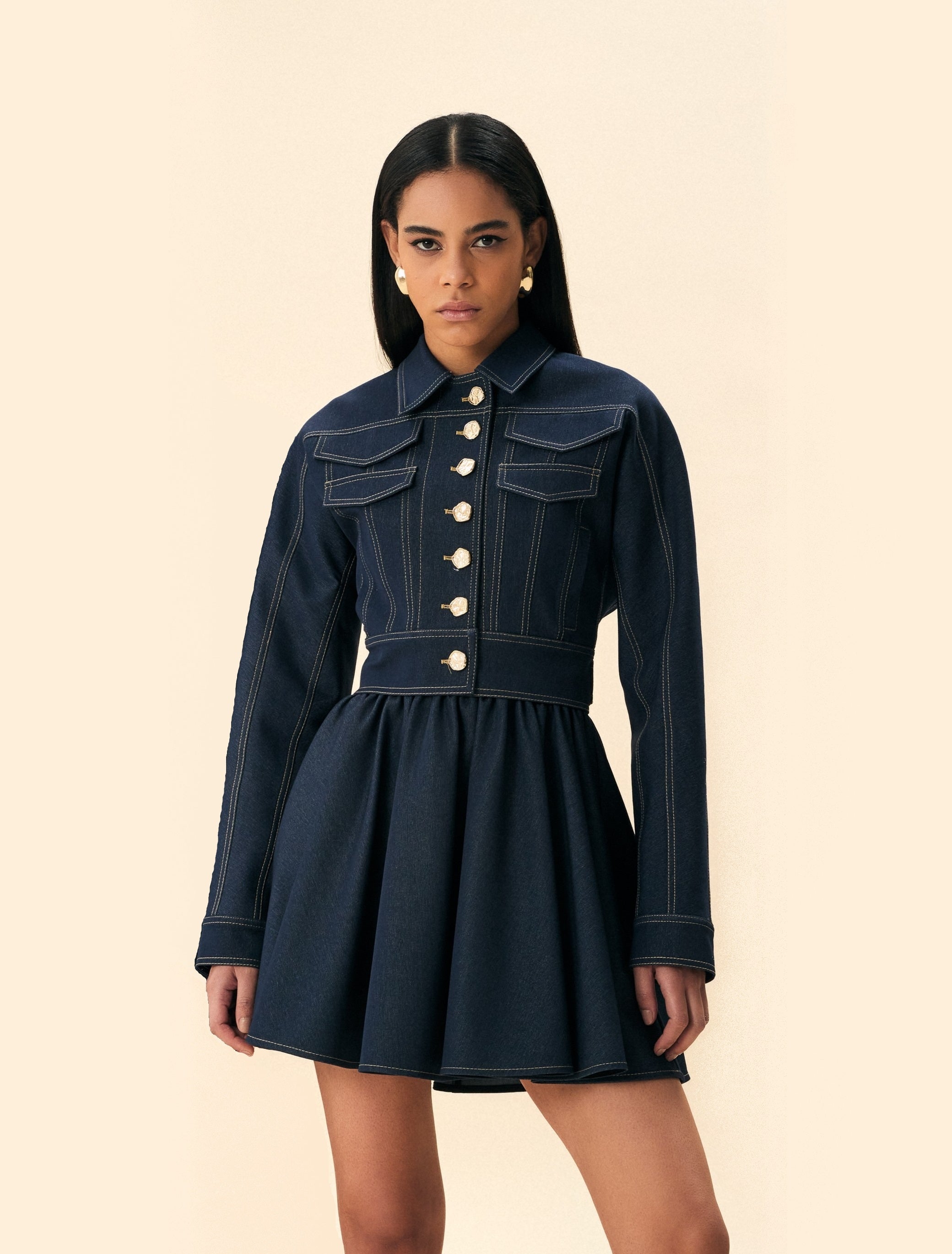 METAL DÜĞME VE DİKİŞ DETAYLI CROP KOT CEKET JEAN