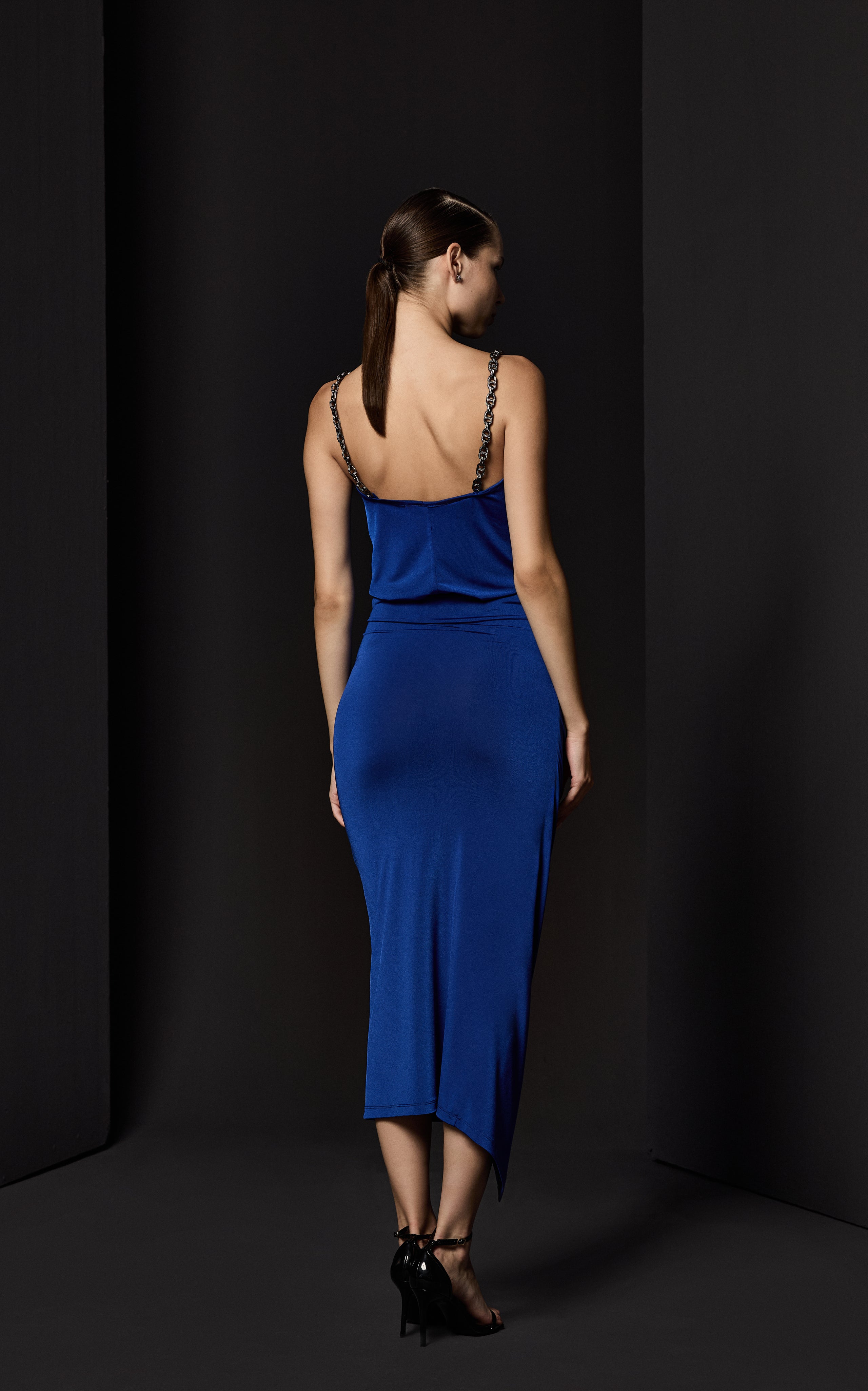 ZİNCİR ASKI DETAYLI JARSE BLUZ SAKS
