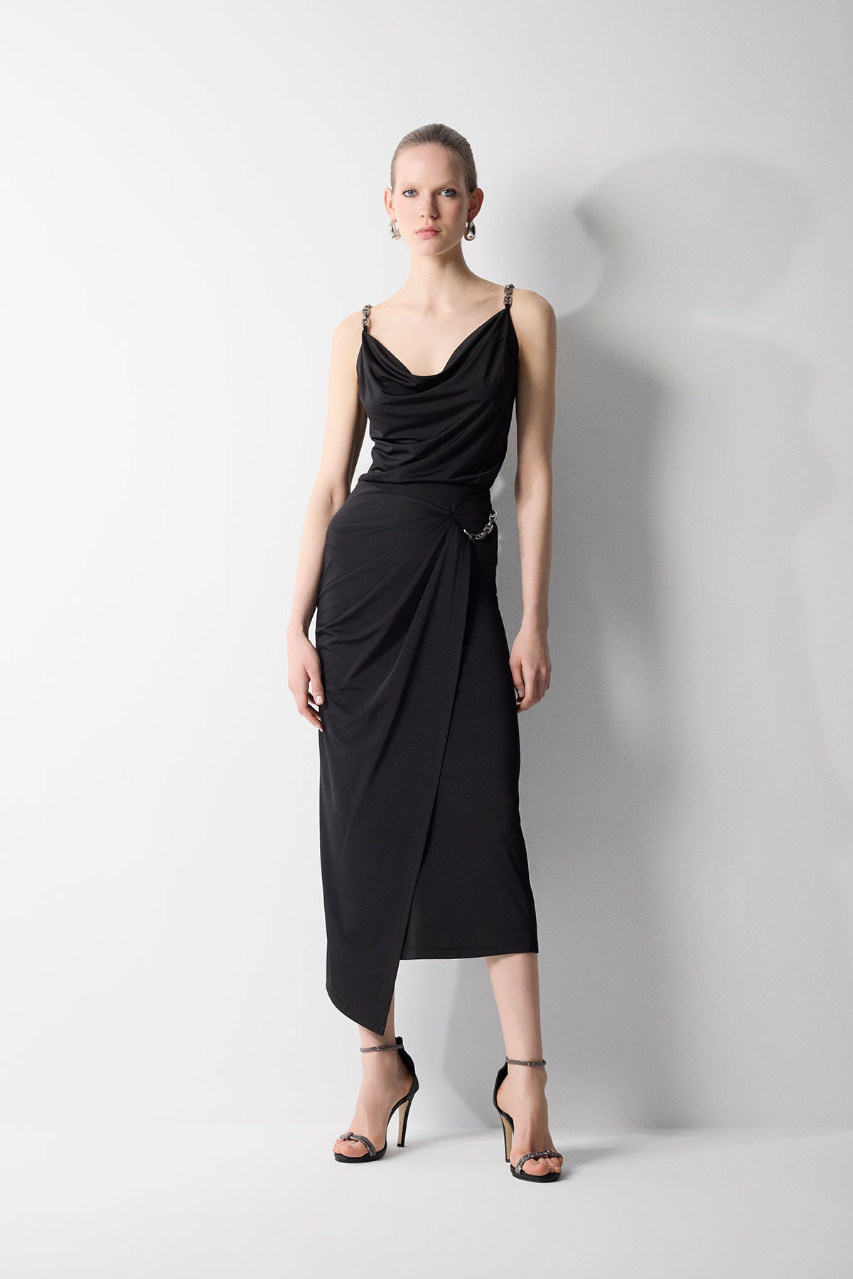 ZİNCİR ASKI DETAYLI JARSE BLUZ SİYAH